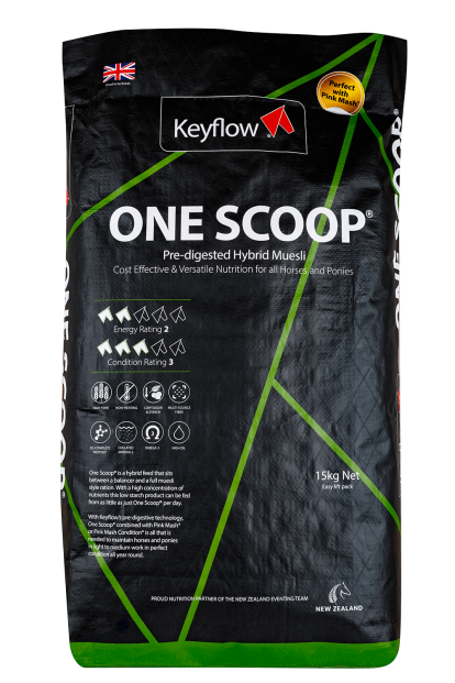 One Scoop® by Keyflow® is a hybrid feed that sits between a balancer and a full muesli style ration.