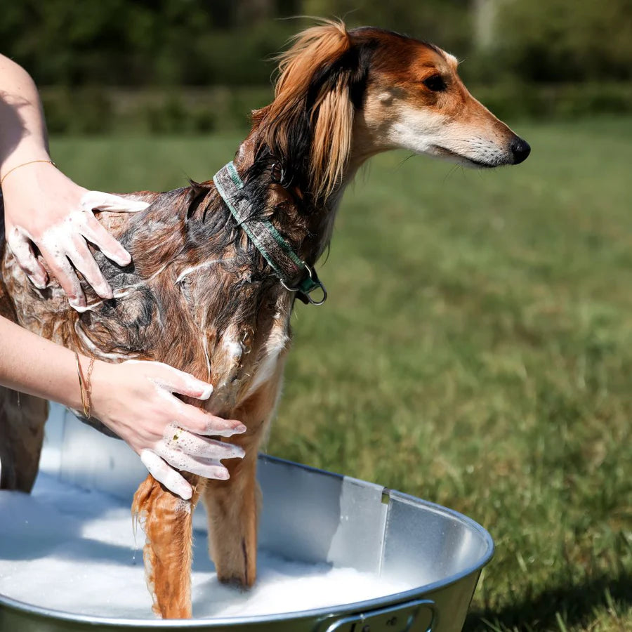 Read label before use. This shampoo is supplied in concentrated format and should be diluted before use. Dilute the shampoo 10:1 adding 1 part shampoo (10ml) to 10 parts water (100ml). For best results use warm water. Thoroughly wet your dog’s coat with warm water. Massage the coat and skin, using your hands, a brush, or a sponge, creating a rich lather. Work through the coat, avoiding the eyes, nose and ears. It is recommended to