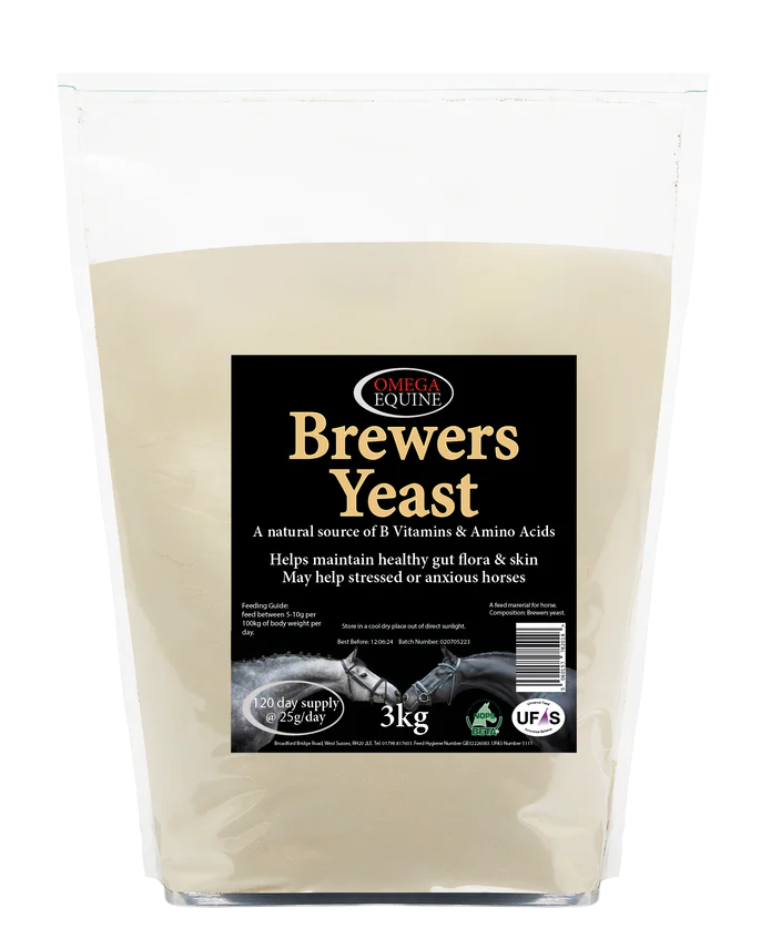 Brewers yeast is a natural by-product of the beer fermentation process & a firm favourite for horse owners . Ground into a fine powder, it is packed with high levels of complex B vitamins , minerals & essential amino acids , all nutrients essential for keeping horses healthy & in particular , happy .