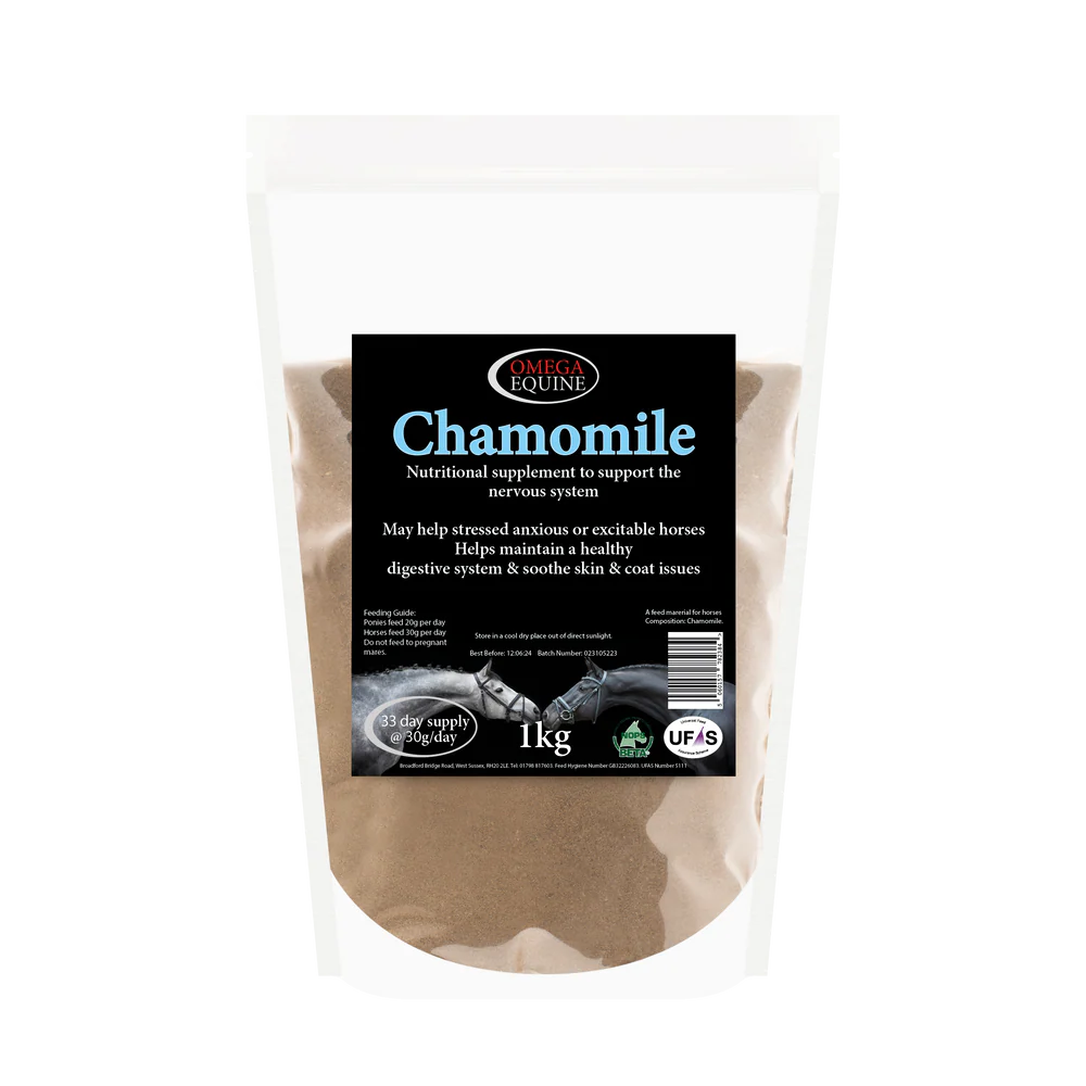 Chamomile is beneficial for horses health , relaxing properties , soothing both the nervous & digestive systems.