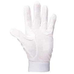 Cotton pimple glove with grip palm, finger reinforcements and Velcro wrist fastening.