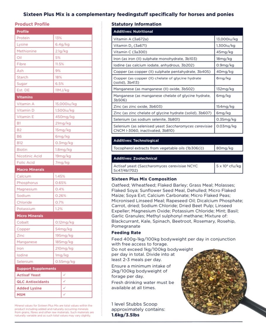 Sixteen Plus Mix is a complimentary feeding stuff specifically for horses & ponies .
